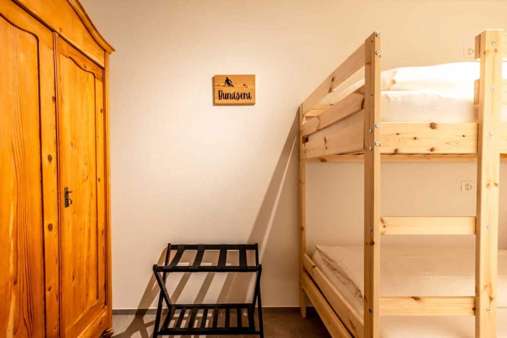 Es besteht aus einem hellen und freundlichen Wohn- und Essraum mit offener und gut ausgestatteter Küche. Die gemütliche Sofagarnitur und der Smart-TV runden den Wohnraum ab. Das erste Schlafzimmer hat ein Doppelbett (160 x 200 cm) und ist mit einem Kleiderschrank ausgestattet. Dieses Schlafzimmer verfügt über einen direkten Zugang auf die Terrasse. Das zweite Schlafzimmer hat ein Stockbett. Dieser Raum hat keine Fenster. Die Terrasse ist ebenerdig und teilweise gedeckt. Sie lädt mit den zwei bequemen Sesseln zum Verweilen ein. Dank einem Gasgrill steht auch einem gemütlichen Grillplausch nichts im Wege. Eine Sitzbank vor dem Haus auf der sich die Abendsonne geniessen lässt, gehört ebenfalls zur Wohnung. Weiter bietet die Wohnung ein Badezimmer mit einer grosszügigen Walk In Dusche. Die Überbauung verfügt auch über eine Waschmaschine, welche im allgemeinen Bereich steht. In der Tiefgarage steht Ihnen ein reservierter Parkplatz zur Verfügung. Dieser ist mit einer Ladestation für Elektroautos ausgestattet (Nutzung im Preis nicht inbegriffen).